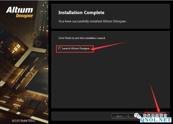 9.把“Launch Altium Designer”前面的勾去掉,点击“Finish”。