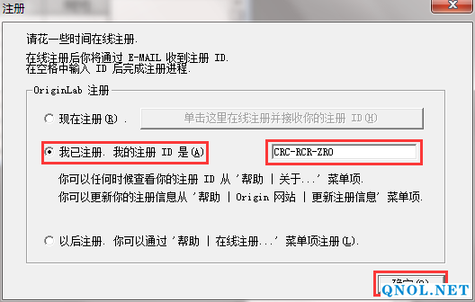 6、选择我已注册,填入注册ID:CRC-RCR-ZR0,并点击确定键即可。