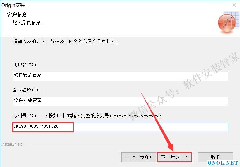 8.填写用户信息,输入序列号:【DF2W8-9089-7991320】,然后点击【下一步】。