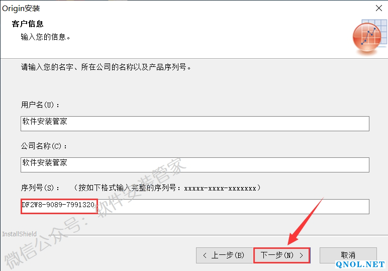 8.随意填写【用户名】和【公司名称】,然后输入【序列号】:DF2W8-9089-7991320,然后点击【下一步】。