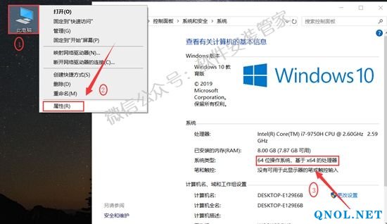 附:操作系统的位数查看方法:鼠标右击桌面【此电脑或计算机】选择【属性】,在系统类型处可查看操作系统的位数,下图为64位操作系统。