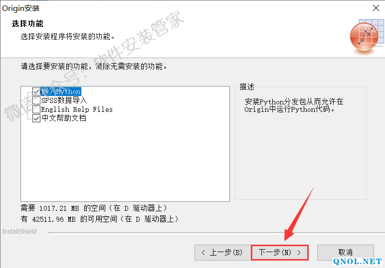 11.点击【浏览】更改软件安装路径,建议安装在除C盘之外的其它磁盘内,可在D盘或其它磁盘内新建一个【Origin2019】文件夹,然后点击【下一步】。