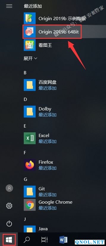 21.点击左下角【开始】菜单,然后选中【Origin 2019b 64Bit】拖向电脑桌面即可创建桌面快捷方式。