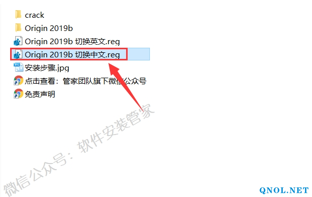25.双击【Origin 2019】压缩包解压后的【Origin 2019】文件夹中的【Origin 2019b 切换中文.reg】。
