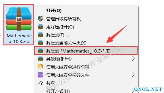 1.鼠标右击【Mathematica_10.3】压缩包选择【解压到Mathematica_10.3】。