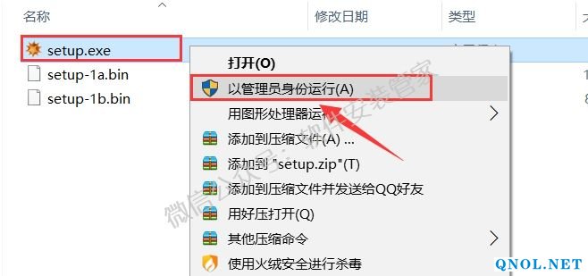 4.鼠标右击【setup.exe】选择【以管理员身份运行】。