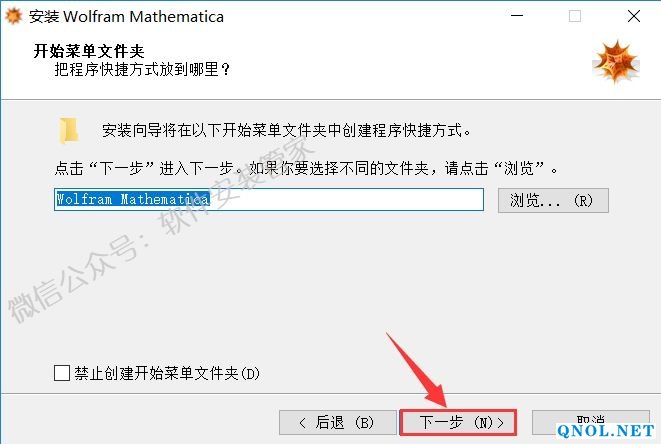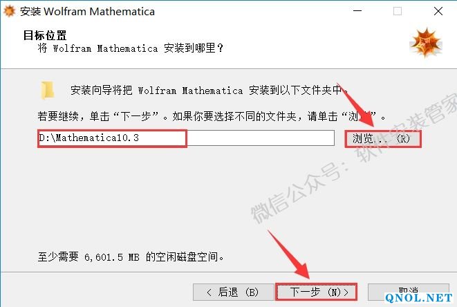 7.点击【浏览】更改软件的安装路径,建议安装在除C盘之外的其它磁盘,可以在D盘或其它磁盘新建一个【Mathematica10.3】文件夹然后点击【下一步】。