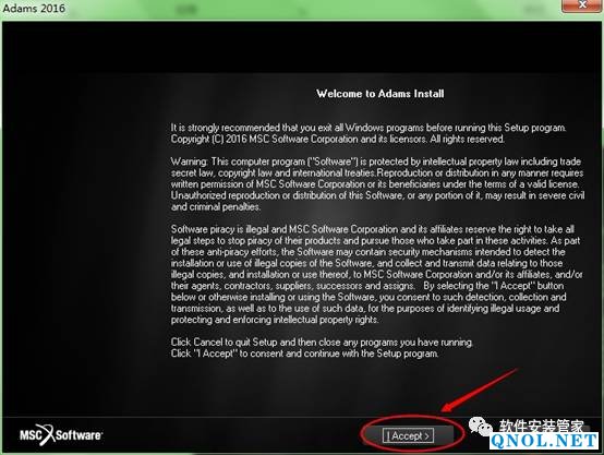 23、安装完成后会弹出以下界面,点击“Browse”选择前面生成的许可文件license.dat(许可安装中新生成的),路径C:\MSC.Software\MSC.Licensing\11.9\license.dat,然后点击Next。