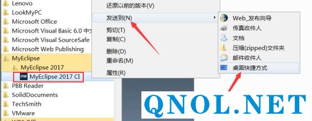 15.在开始菜单所有程序中找到MyEclipse 2017 CI,然后鼠标右击软件点击发送到桌面快捷方式。