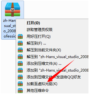2、在解压文件中找到zh-Hans软件压缩包,鼠标右击选择加载至虚拟光驱。