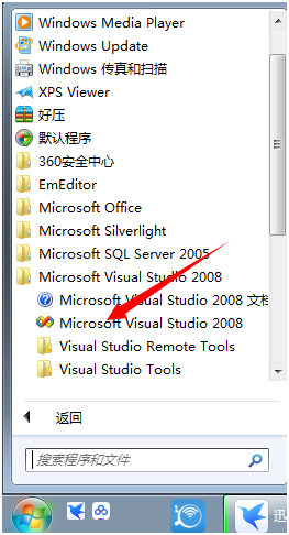 13、点击电脑开始菜单栏,找到Microsoft Visual文件夹 然后点击打开Microsoft Visua Studio 2008。