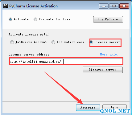 16、勾选License server,在License server address:处填入http://intellij.mandroid.cn/ (或http://idea.imsxm.com/ 或http://idea.iteblog.com/key.php)三者中的任意一个即可,然后点击Activate。