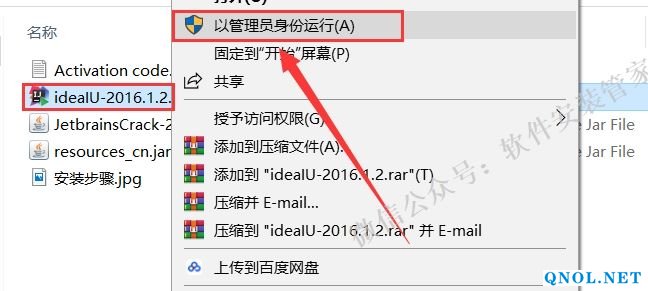 3.选中【ideaIU-2016.1.2】可执行文件,鼠标右击选择【以管理员身份运行】。