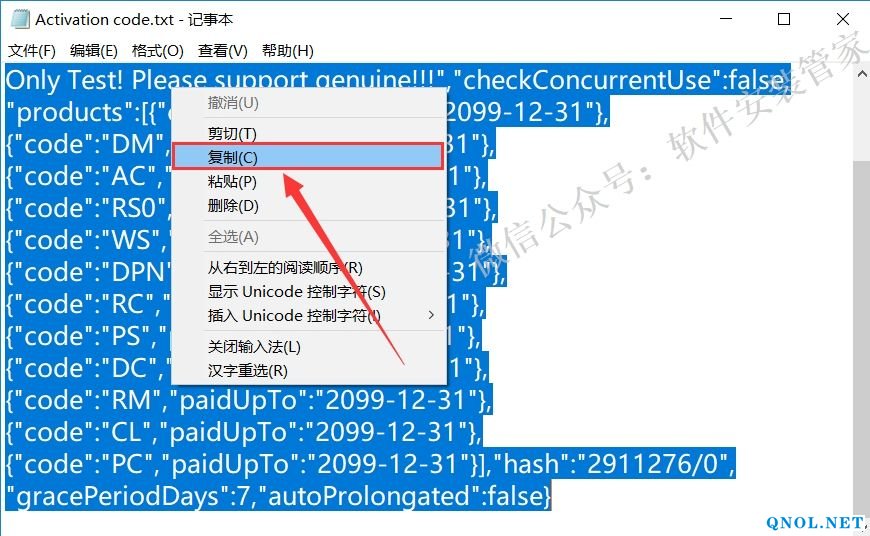 23.按下快捷键Ctrl+A选中里面的所有字符,鼠标右击选择【复制】。