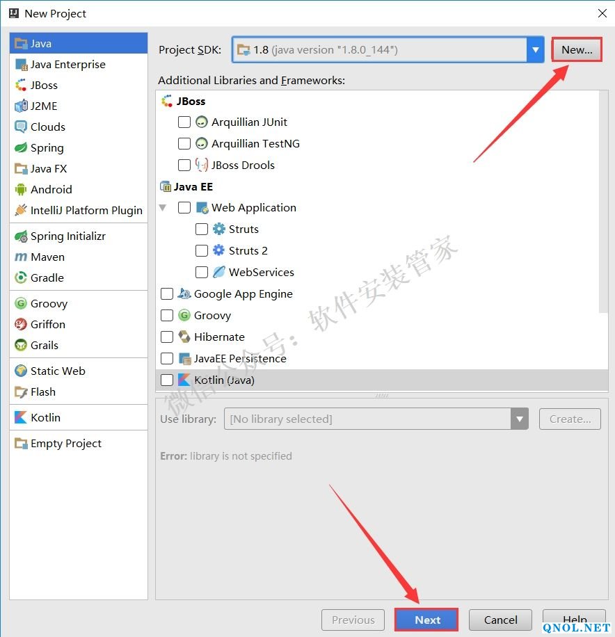 26.点击【New】选择自己JDK的安装路径,默认安装路径为C:\Program Files\Java\jdk1.8.0_144,然后点击【Next】。