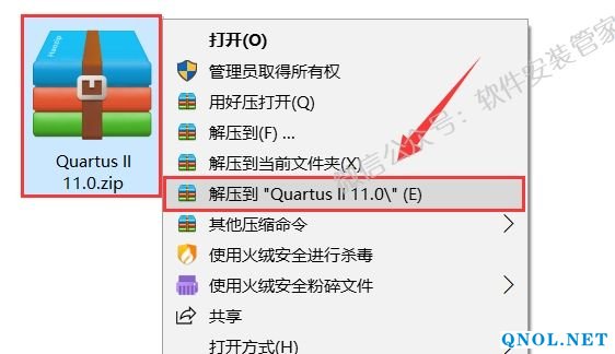 1.鼠标右击【Quartus II 11.0】压缩包选择【解压到Quartus II 11.0】。