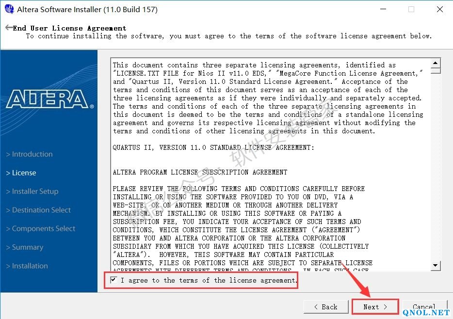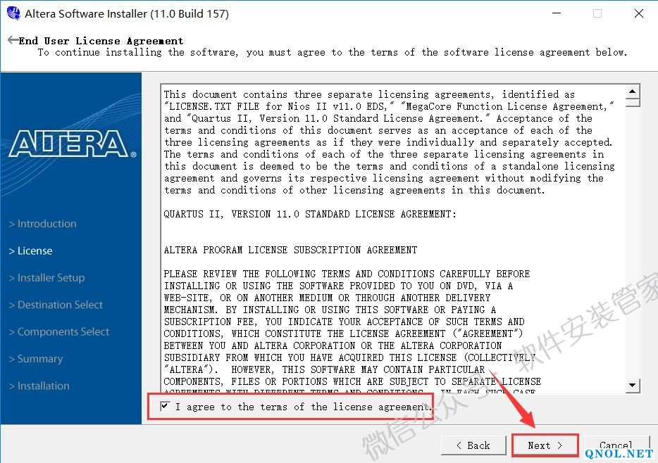 8.勾选【I agree to the terms…】然后点击【Next>】。