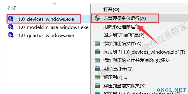 4.鼠标右击【11.0_quartus_windows.exe】选择【以管理员身份运行】。