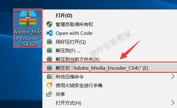 1.鼠标右击【Adobe_Media_Encoder_CS4】压缩包选择【解压到Adobe_Media_Encoder_CS4】。