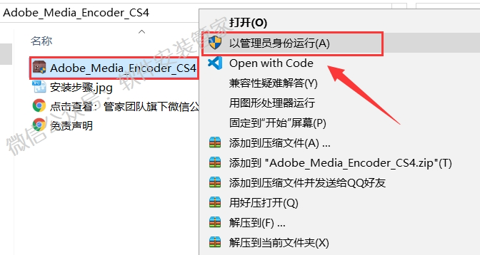 3.选中【Adobe_Media_Encoder_CS4】鼠标右击选择【以管理员身份运行】。