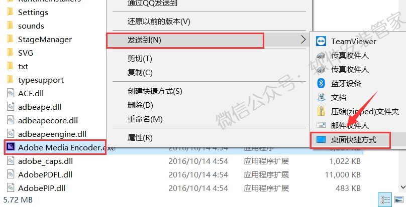 6)选中【Adobe Media Encoder.exe】鼠标右击选择【发送到】—【桌面快捷方式】