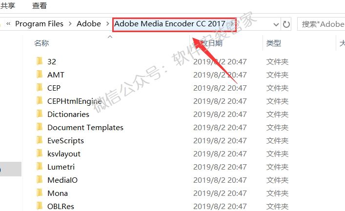2)点击【Adobe Media Encoder CC 2017】返回到上一级目录。
