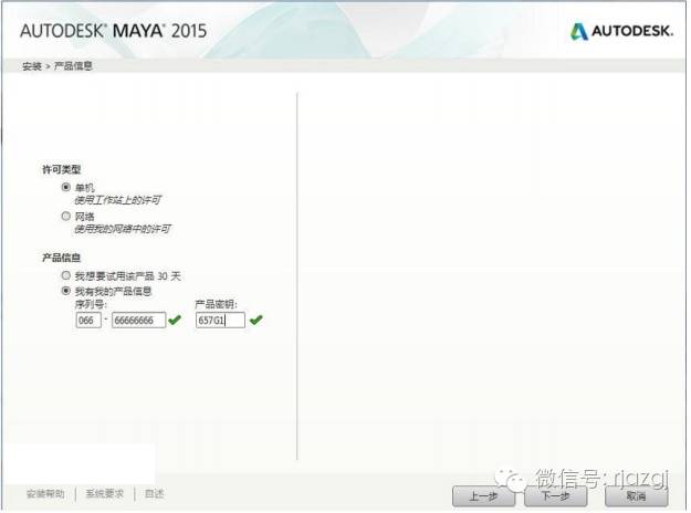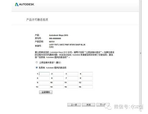 11、 把注册机第二栏生成的激活码,复制到 maya 2015 激活框里,