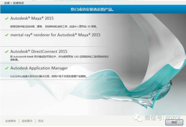 7、 等待 maya 2015 自动安装,该过程较耗时, 请耐心等待。 安装完毕后,点“完成”。 接下来就是激活环节了哦!