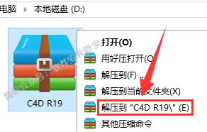 1.选中软件压缩包,鼠标右击选择解压到“C4D R19”。