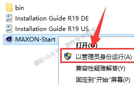 4.选中“MAXON-Start”后,鼠标右击选择“以管理员身份运行”。