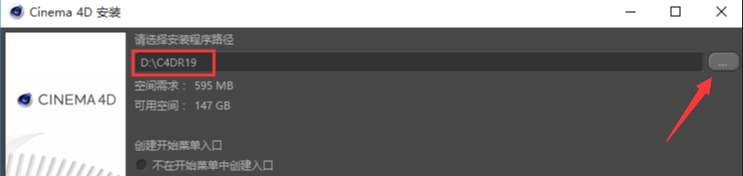 12.点击右侧的三个点更改软件安装路径,建议安装到除C盘以外的磁盘,可在D盘或其它盘新建一个C4DR19文件夹,选中“C4DR19”文件夹后点击“确定”。温馨提示:软件安装的目录不能带中文。