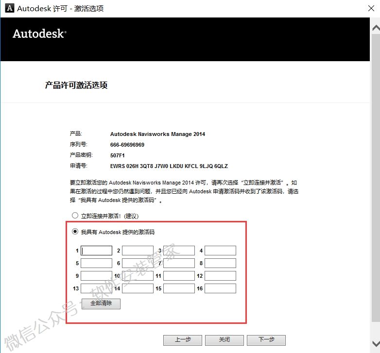 3.复制【Autodesk】提供的激活码时,直接全选激活码(快捷键Ctrl+A),复制激活码,点击【我具有Autodesk提供的激活码】在方框里面粘贴即可完成复制。
