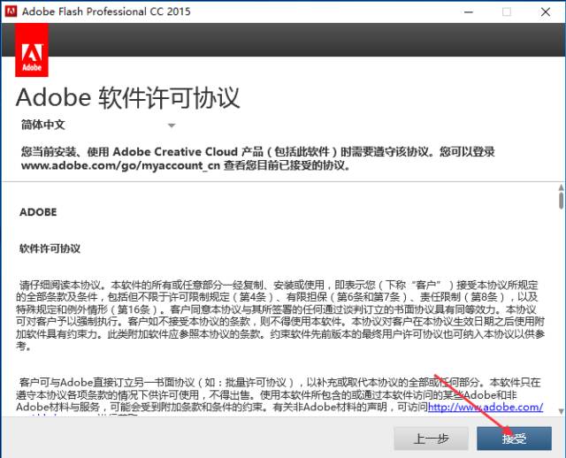 9.软件默认安装在C:\Program Files\Adobe(建议安装在除C盘以外的磁盘上,可以在D盘新建一个FLCC2015的文件夹)点击安装