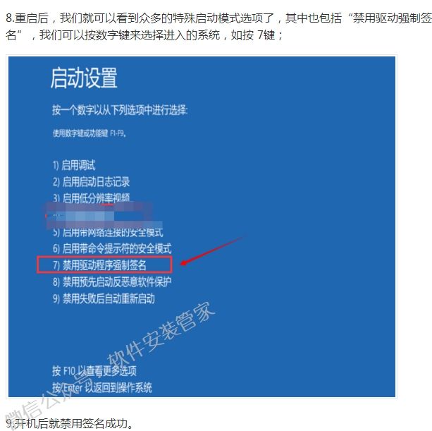 windows10系统需要先设置禁用驱动程序强制签名(win7系统不用设置直接看18步)。设置完成后即可继续安装。