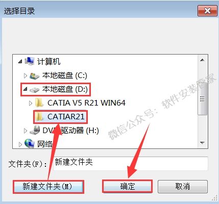 7.选择在D盘或其它盘中新建的“CATIAR21”文件夹,选中后点击“确定”。