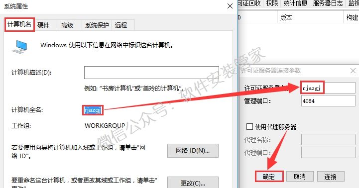 28.在“计算机名”栏中找到“计算机全名”,将计算机名称全选后“Ctrl+C复制”接着“Ctrl+V粘贴”至如图所示处,然后点击“确定”。