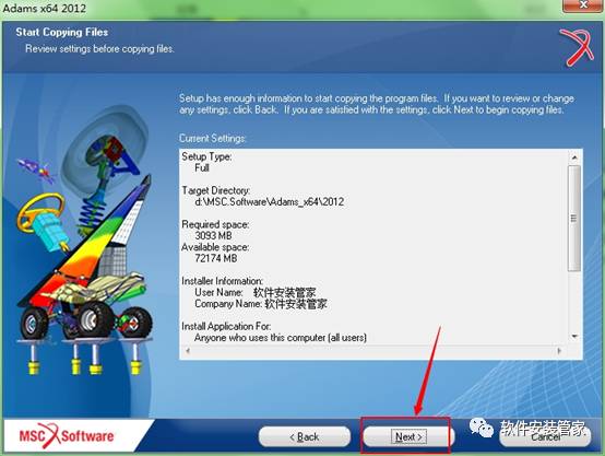 20、选择安装模式和安装目录,点击“FUll”,然后点击“Browse”更改安装路径,建议安装到除C盘的以外的其他磁盘,可在D盘新建一个Adams2012文件夹,然后点击Next。