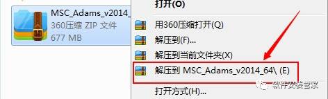1、右击软件压缩包,选择解压到“MSC_ADAMS_v2014_64”