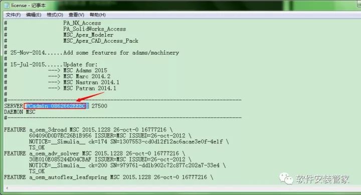 9、 返回用记事本打开的“license”的文本,并在文本中找到“PCadmin 0862662EEBC8”