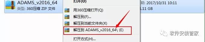 1、右击软件压缩包,选择解压到“MSC_ADAMS_v2017_64”。