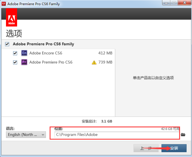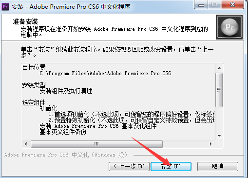 15.选择安装路径(建议安装在除C盘以外的磁盘上,可在D盘新建文件夹D:\Program Files\Adobe\Adobe Premiere Pro CS6),点击下一步