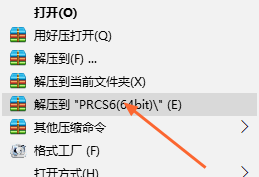 1.断网,右击软件压缩包,选择解压到“ PRCS6”选项
