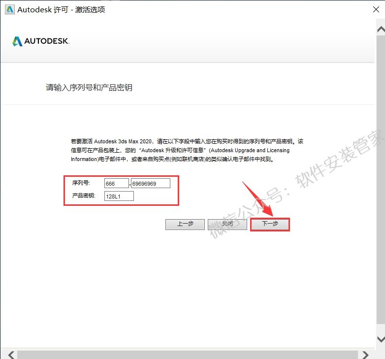 16.序列号输入【666-69696969】,产品密钥输入【128L1】,然后点击【下一步】。