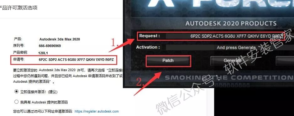 23.选择【我具有Autodesk 提供的激活码】然后点击【Generate】,使用快捷键Ctrl+C复制注册机中生成的激活码,然后使用快捷键Ctrl+V粘贴到软件的激活码输入框中。