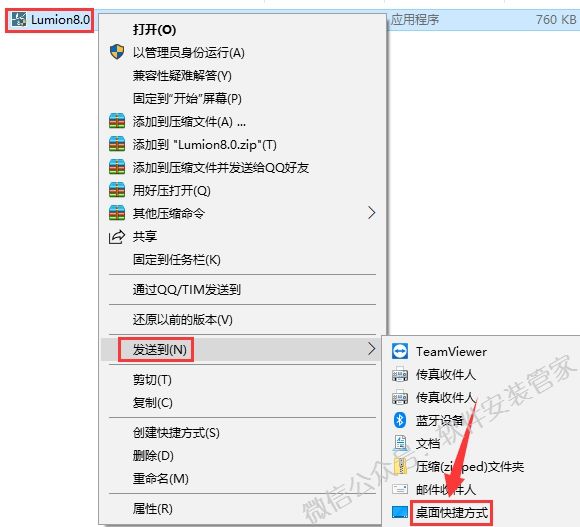 11.选中【Lumion8.0】后,鼠标右击选择【发送到】-【桌面快捷方式】。