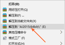 1.断网,右击软件压缩包,选择解压到“AI2015(64bit)”选项
