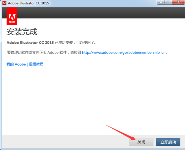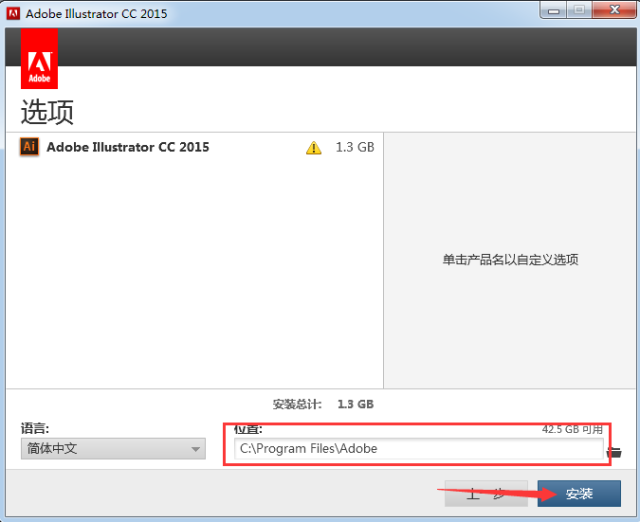 8.软件默认安装在C:\Program Files\Adobe(建议安装在除C盘以外的磁盘上,可以在D盘新建一个AI2015的文件夹)点击安装