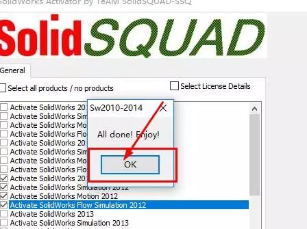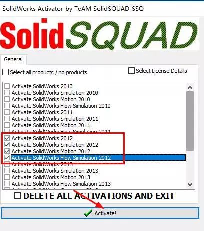 10.勾选Activate solidworks2012所有项目,点击Activate
