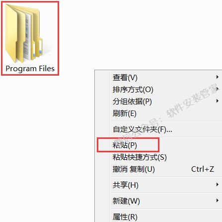 3.将“Program Files”粘贴到除C盘以外的其他盘,可在D盘空白处鼠标右击选择粘贴。