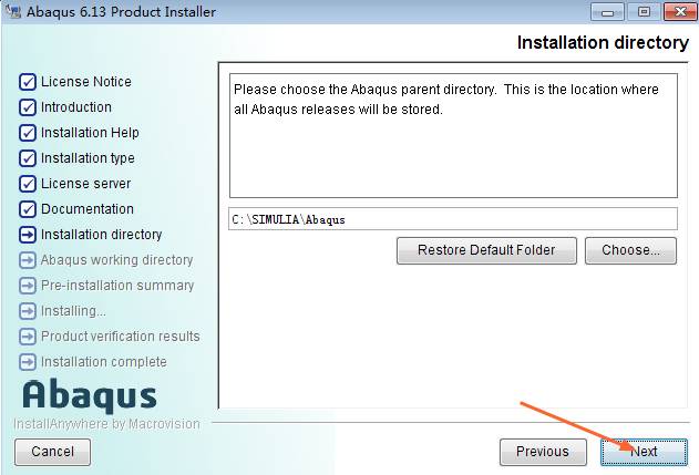 24.选择安装路径,默认为C:\SIMULIA\Abaqus(建议安装在除C盘以外的磁盘中,可在D盘新建一个文件夹D:\SIMULIA\Abaqus)点击Next